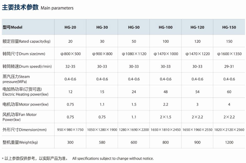 HG series drying machine''s drum was made by good quality stainless steel, it candrying cloth in a short time because of its heating efficiency. lt is a necessaryequipment in hotels, hospitals, garments factories, food industries, washingfactories, textile and dyeing industries for cotton, silk, fiber drying.